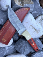 Damast Jagdmesser schöne Klingenmaserung Damast Stahl mit Lederhülle 1508eGun-ID: 20275555