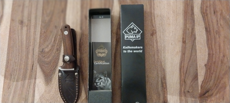 Puma IP POLLUX II Jagdmesser, AN-58 Stahl, Bocoteholz-Griff, Drop Point, Full Tang, LederscheideeGun-ID: 20275622