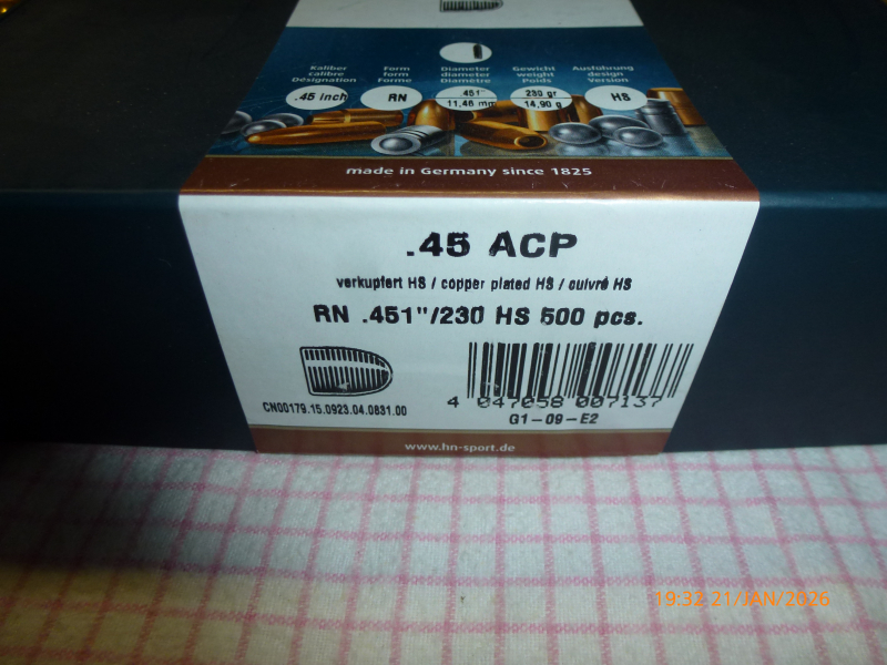 H+N RN .451 230gr für .45ACP ca.430 StckeGun-ID: 20277840