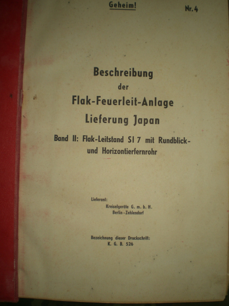 Antiquarisches Buch:Beschreibung der Flak Feuerleit anlage Lieferung Japan 1943 - GeheimeGun-ID: 20279497