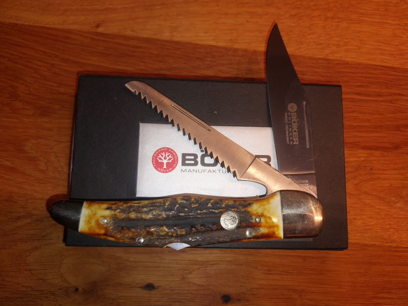 Neu!!! Böker Klappmesser mit Hirschhorngriff & Säge 440C Stahl unbenutzteGun-ID: 20280672