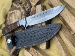 Handgefertigtes Damast-Bowiemesser. Jagdmesser. Survivalmesser. Outdoormesser. Mit Scheide.eGun-ID: 20281000 - Artikel-Nr des Verk.: FA926