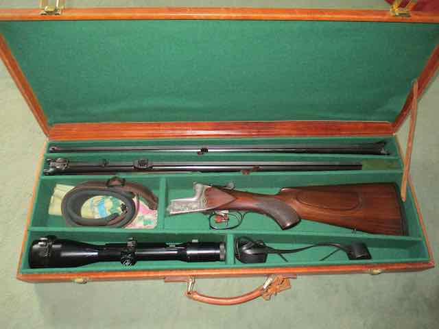 Merkel 211E, Bockbüchsflinte,7x65R-12/70, Bockdoppelflinte als 12/70WL-Lauf, im LederkoffereGun-ID: 20281291 - Artikel-Nr des Verk.: Dello
