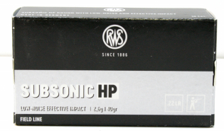 50 Stück Schuss RWS .22 l.r. lfb KK Munition SUBSONIC HP 40grs 2,6g Blei Hohlspitz 315m/s JAGD leiseeGun-ID: 20282161 - Artikel-Nr des Verk.: 2132664