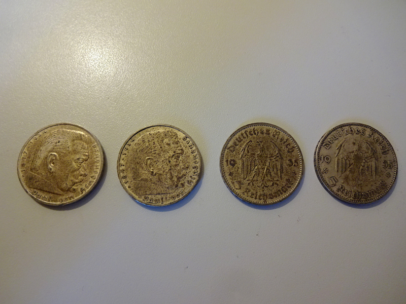 Jagdzubehör > Geschenkartikel 4x 5 Mark Silbermünzen 1935/1936 III.ReicheGun-ID: 20283180