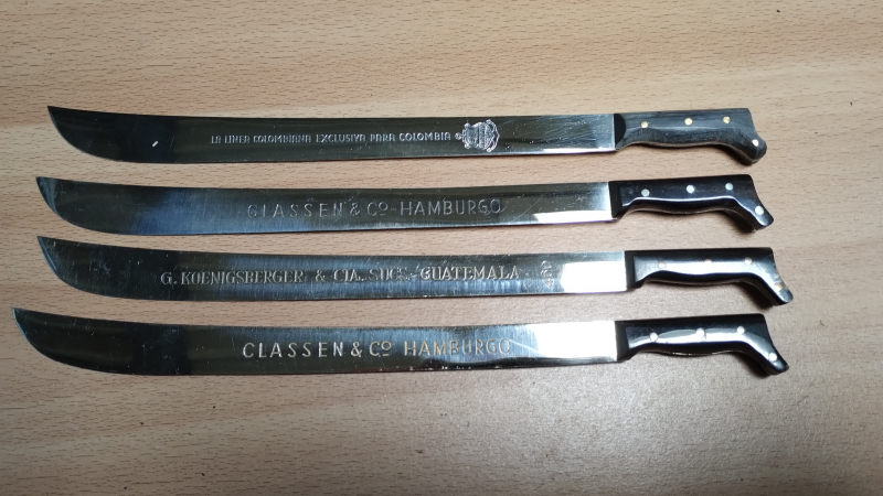 4 Miniatur-Macheten mit Werbung, 50er JahreeGun-ID: 20283438