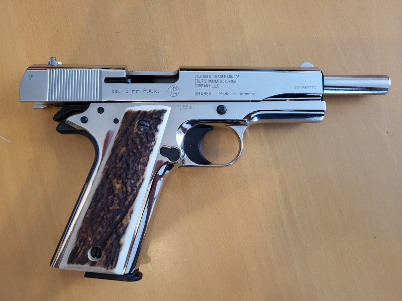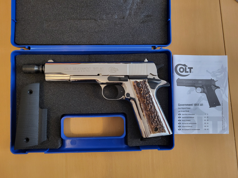 Colt Government 1911 A1 Cal. 9mm P.A.K. Polished Chrome mit HirschhorngriffeGun-ID: 20284527