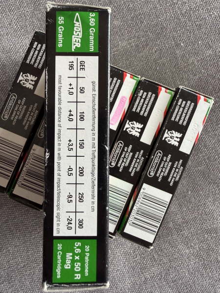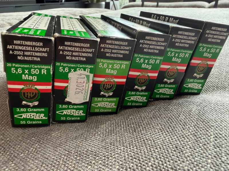 Hirtenberger 5,6 × 50 R Mag – 120 Schuss – 3,6 g / 55 gr Nosler – PremiumeGun-ID: 20285535