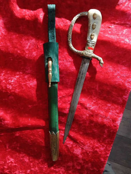 Kurzer Luxus Bügelhirschfänger mit Lederscheide III-ReicheGun-ID: 20286526 - Artikel-Nr des Verk.: 37