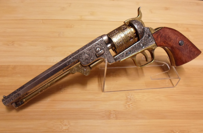 Modell-Vorderlader-Revolver Colt Navy ,graviert , silber/goldeGun-ID: 20287845
