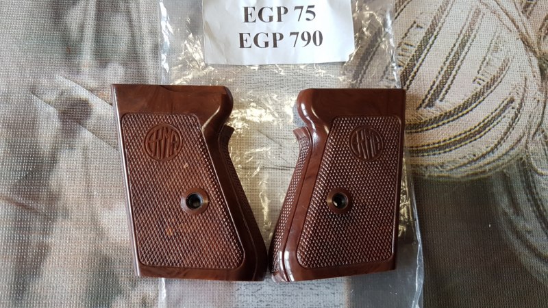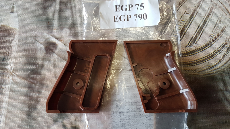 ERMA EGP 75 ,EGP 790 , Griffschalen braun , original ERMAeGun-ID: 20288747