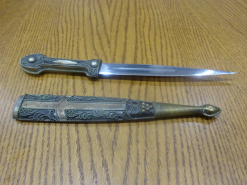 kleiner Dolch mit Messinggriff und verzierter ScheideeGun-ID: 20290110