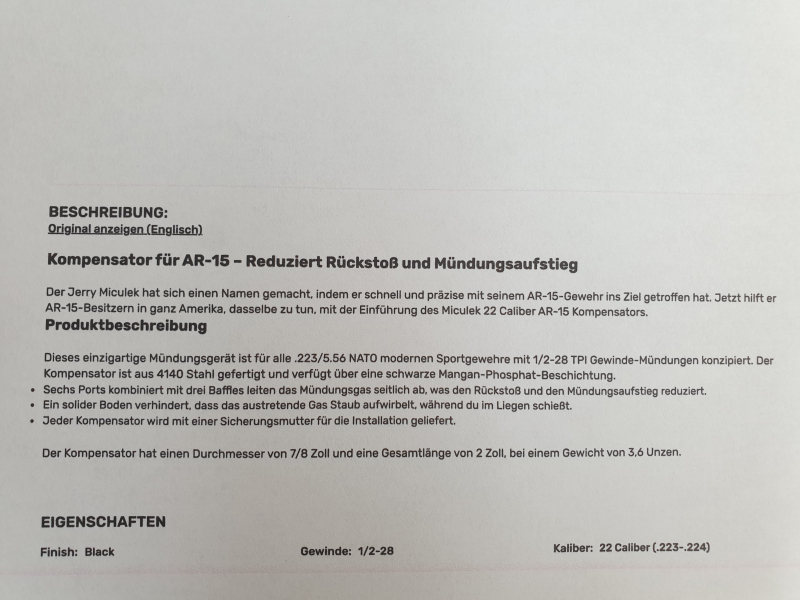 Jerry Miculek Kompensator für AR15 Gewehre mit 1/2 - 28 TPI MündungsgewindeeGun-ID: 20290219