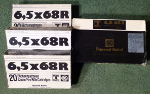 6,5x68 R mit 6g (93gr) Teilmantelgeschoß von RWS, eine sehr gesuchte Weitschußpatrone, die selten aeGun-ID: 20291472 - Artikel-Nr des Verk.: 155-2