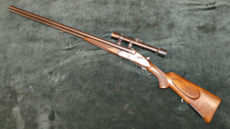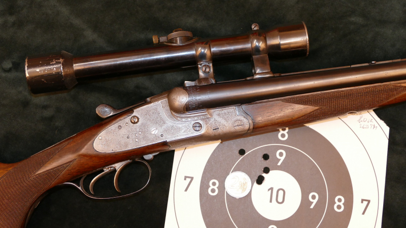 Sammlerwaffen/-munition > Gewehre > 1900 - 1945 Seitenschloß-Drilling Stiegele, Kal. 8x57JR u. 16/65 mit Zeiss-ZF, separater Kugelsp.eGun-ID: 20297046 - Artikel-Nr des Verk.: Stiegele Drlg.