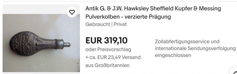 Hawksley Pulverflasche aus EnglandeGun-ID: 20297790