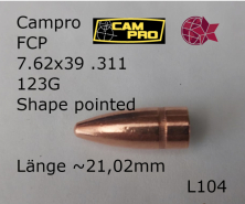 .311 7,62x39: 500 Geschoße 123 GRAIN FCP Shaped Pointed (zwischen Rund & Spitz) .254 Micron, Crimp CeGun-ID: 20298511 - Artikel-Nr des Verk.: .311 123 gr FCP SPIT