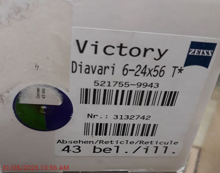 Schießsportausrüstung > Zieloptiken > Zielfernrohre Zielfernrohr Zeiss Victory Diavari 6-24x56TeGun-ID: 20301392