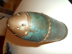 Deutsche Granate f.d. 9cm Kanone, siehst Du schon an dem Doppelzünder Ze (Zeit) 91. u.d.BeschriftungeGun-ID: 20302576 - Artikel-Nr des Verk.: 10