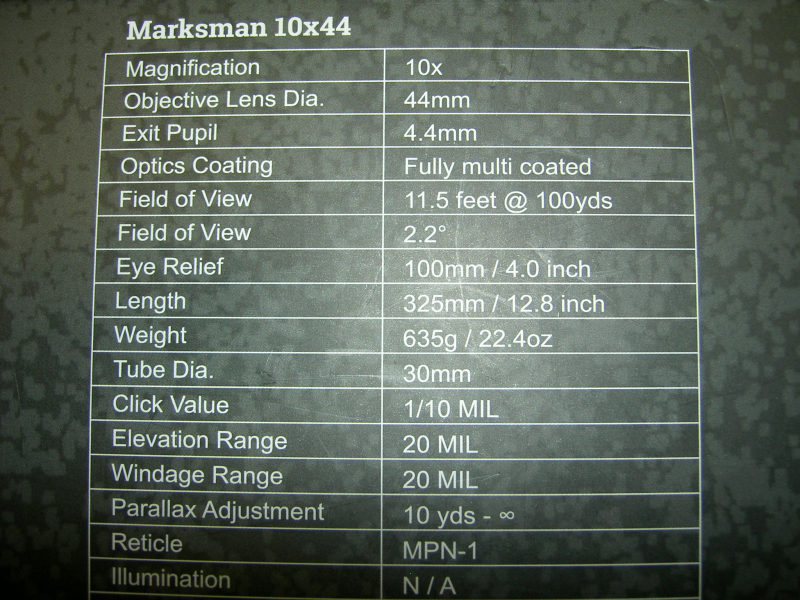 Zielfernrohr Vector Optics Marksman MRad 1/cm Klick 10x44 Sideparallaxe ASVeGun-ID: 20303181