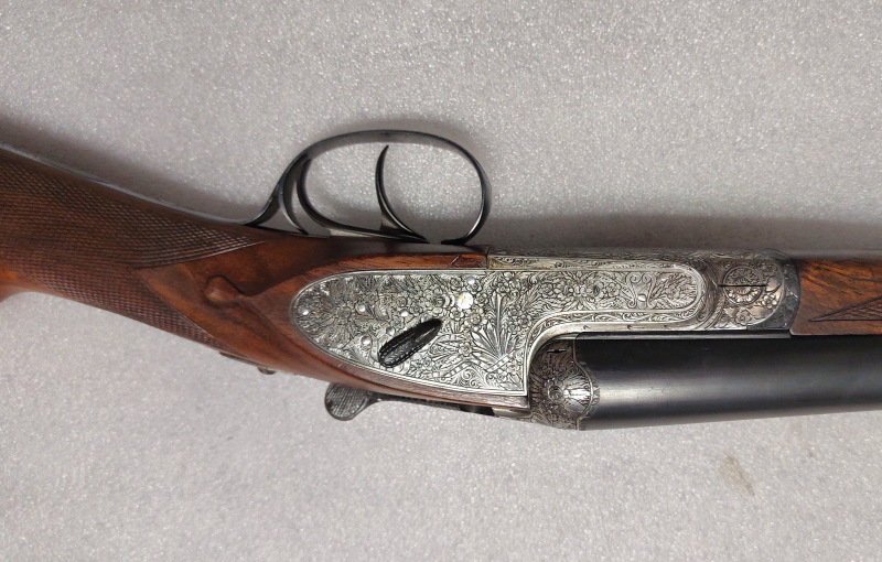 AyA No. 2 Seitenschloss-Doppelflinte Kal. 12/70 – Traumhafte Gravur & MaserholzeGun-ID: 20305845