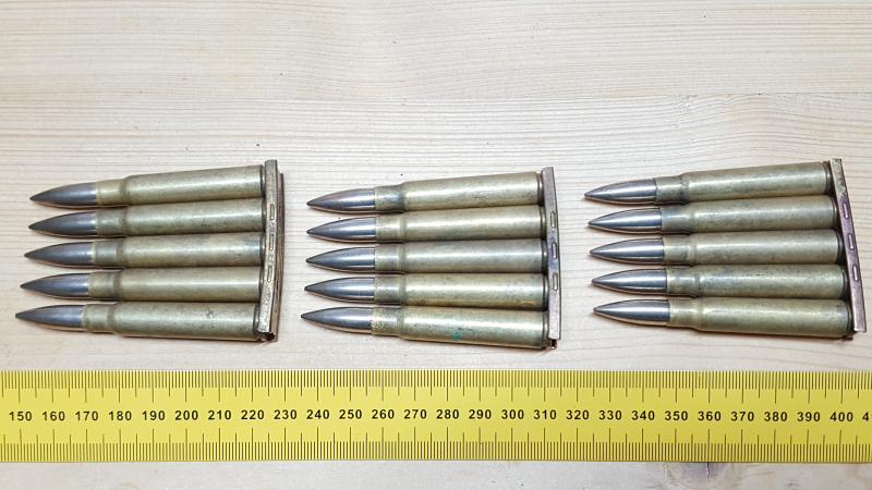 Sammlermunition: 15 Dekopatronen 7,9x57 Jugoslawien a.Ladesrteifen in Sch. 2.WK.eGun-ID: 20306009 - Artikel-Nr des Verk.: 10