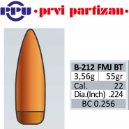 100 Stück PPU | PrviPartizan Geschosse #B-212 | .224(22) 55gr/3,56g FMJ BT Vollmantel BoatTailseGun-ID: 20306926 - Artikel-Nr des Verk.: 36-01010
