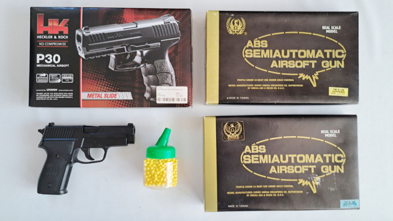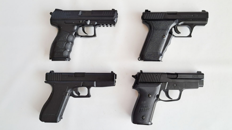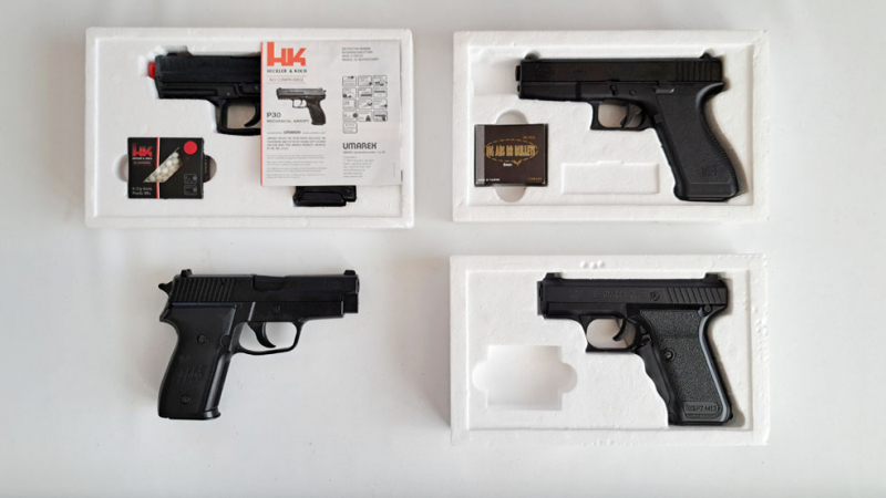 4 Softairpistolen, Kal. 6 mm, Glock 17, Heckler&Koch P7/M13 und P 30, Sig-Sauer P 228, alle m. F-Ze.eGun-ID: 20309319 - Artikel-Nr des Verk.: 0000