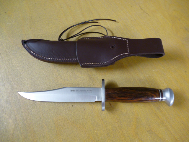 Linder - 440 Bowie Messer - Nr. 196515 - Griff aus Cocoboloholz - Lederscheide in OVPeGun-ID: 20310203
