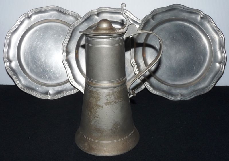 Westernwaffen > Sonstiges 4 teilige Garnitur Zinngeschirr wie aus einer mittelalterlichen Burgküche, neu unbenutzteGun-ID: 20312634