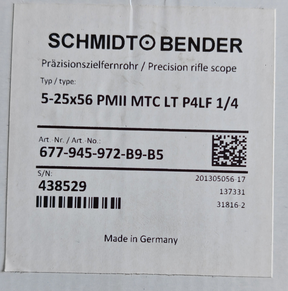 Jagdzubehör > Zieloptiken > Zielfernrohre Schmidt & Bender 5-25x56 PM II MTC LT P4LFeGun-ID: 20314386