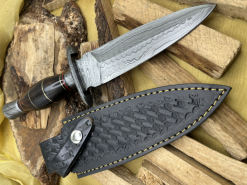 Handgefertigtes Damast-Bowiemesser. Jagdmesser. Survivalmesser. Outdoormesser. Mit Scheide.eGun-ID: 20314568 - Artikel-Nr des Verk.: FA989