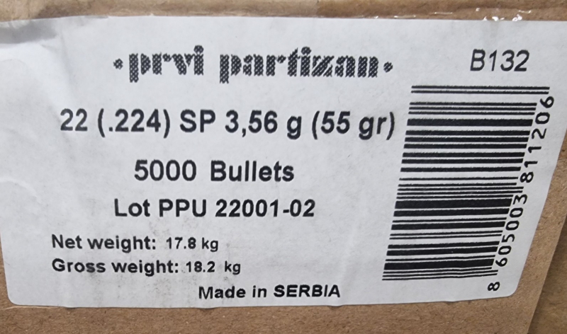.224/55grs PPU SP 1000 Stk. Geschosse B-132 # SSZ BerkaeGun-ID: 20315834