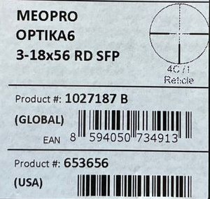 Schießsportausrüstung > Zieloptiken > Zielfernrohre Meopta Meopro Optika 6 3-18x56 RD Leuchtpunkt SFP 30mm Zweite BildebeneeGun-ID: 20315933