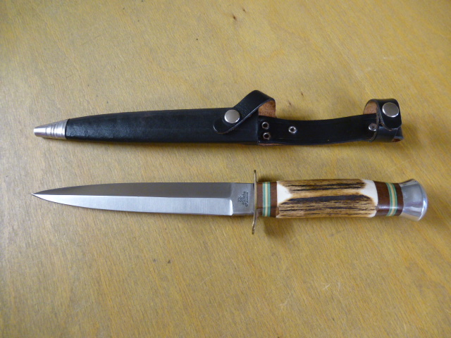Hubertus - Dolch - Griff aus Hirschhorn - schwarze LederscheideeGun-ID: 20317899