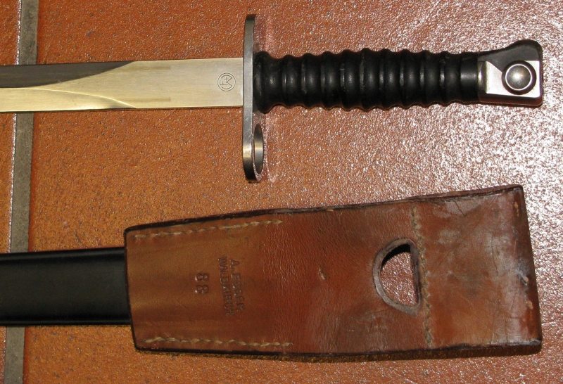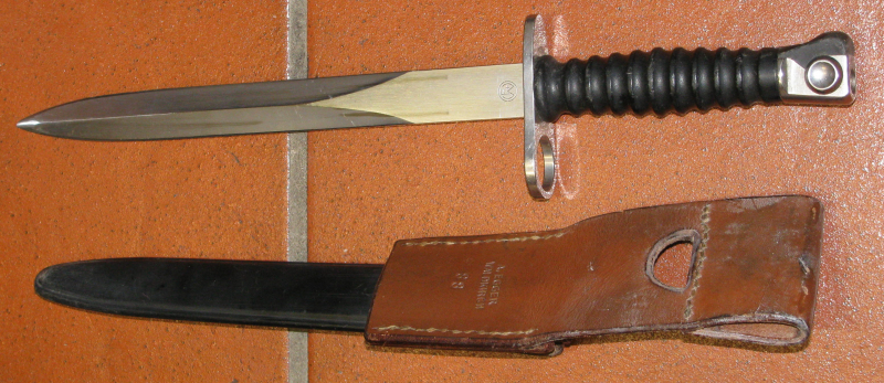Ein Bajonett aus der Schweiz, ein Bajonett Modell 1957 (Stgw 57) mit KoppelschuheGun-ID: 20319231 - Artikel-Nr des Verk.: Neu 11
