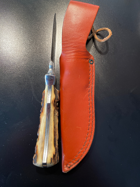 Puma Skinmaster Integral, Sondermodell Wild und Hund, mit Hirschhorngriff und LederscheideeGun-ID: 20319795