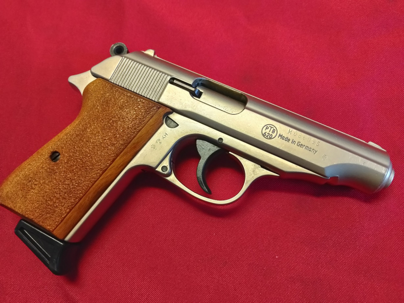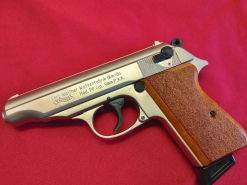 Walther PP 9 mm PAK Pistole **Mit der PTB 620**Vernickelt**HolzgriffschaleneGun-ID: 20320997