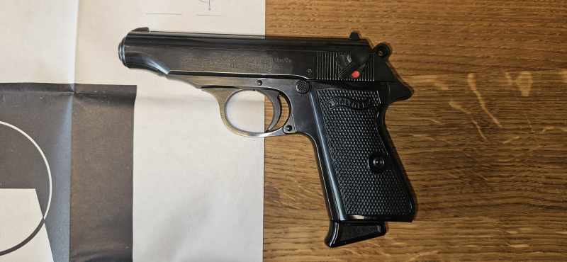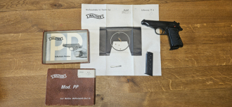 Grosskaliber Kurzwaffen > Militärische Pistolen Walther PP 7,65 mm nummerngleich Karton + Anschussbild 2 MagazineeGun-ID: 20323876