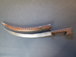 Alte Marokkanische stark gebogenen Flyssa mit geschnitzter HolzscheideeGun-ID: 20324061