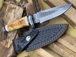 Handgefertigtes Damast-Bowiemesser. Jagdmesser. Survivalmesser. Outdoormesser. Mit Scheide.eGun-ID: 20324615 - Artikel-Nr des Verk.: FA1004