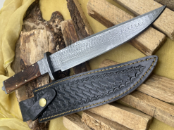 Handgefertigtes Damast-Bowiemesser. Jagdmesser. Survivalmesser. Outdoormesser. Mit Scheide.eGun-ID: 20327711 - Artikel-Nr des Verk.: FA1007
