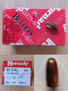 100 St. Hornady Geschosse Kaliber .30 / .308, 110 gr, Teilmantel, RN (Rundkopf) - original verpackteGun-ID: 20330195 - Artikel-Nr des Verk.: Geschosse 26