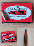 109 St. Nosler Solid Base Geschosse Kaliber 7mm (.284), 120 gr, Teilmantel, Spitzer & Flat-Pt.eGun-ID: 20330214 - Artikel-Nr des Verk.: Geschosse 28
