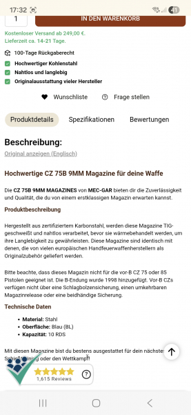 10 Schuss Magazin CZ 75 B NEUeGun-ID: 20331103