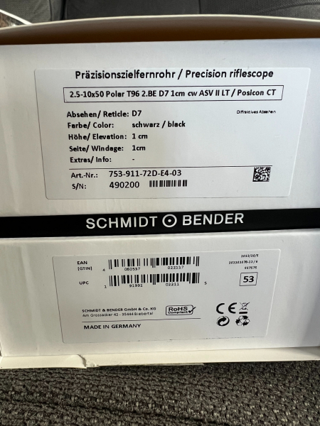 Schießsportausrüstung > Zieloptiken > Zielfernrohre Schmidt & Bender Polar T96 2,5–10x50 ASV II – D7 Absehen – Top Zustand – Rechnung vorhandeneGun-ID: 20331468