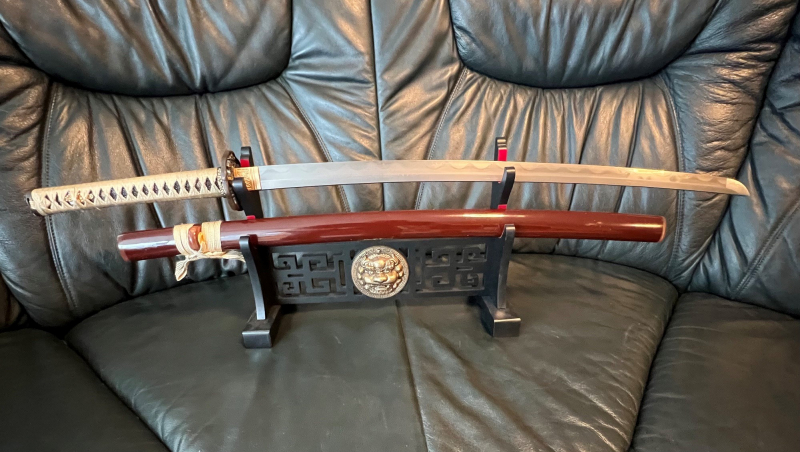 Blankwaffen > Kampfsport und LARP > Asien > Scharf Damast Katana Akeno – gefaltet, Kobuse-Aufbau, scharf, neuwertig + ZertifikateGun-ID: 20331796