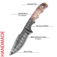 Damast Jagdmesser schöne Klingenmaserung Damast Stahl mit Lederhülle 1301eGun-ID: 20332002