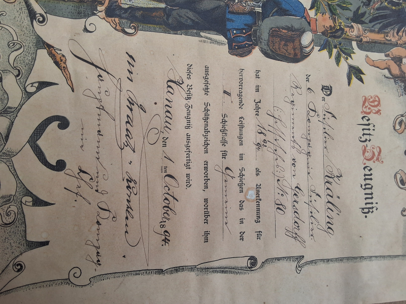 Besitzzeugnis Schützenabzeichen Füsillierreg. v. Gersdorf No 80v. 1894 OrginaleGun-ID: 20332569