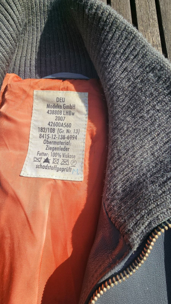Bundeswehr Fliegerjacke Größe 13 (ca. XL )eGun-ID: 20335507 - Artikel-Nr des Verk.: 12345